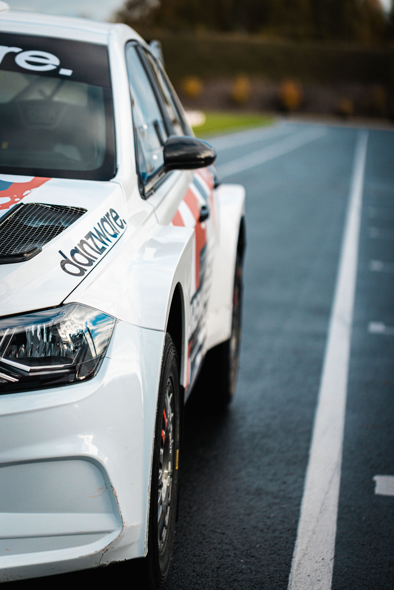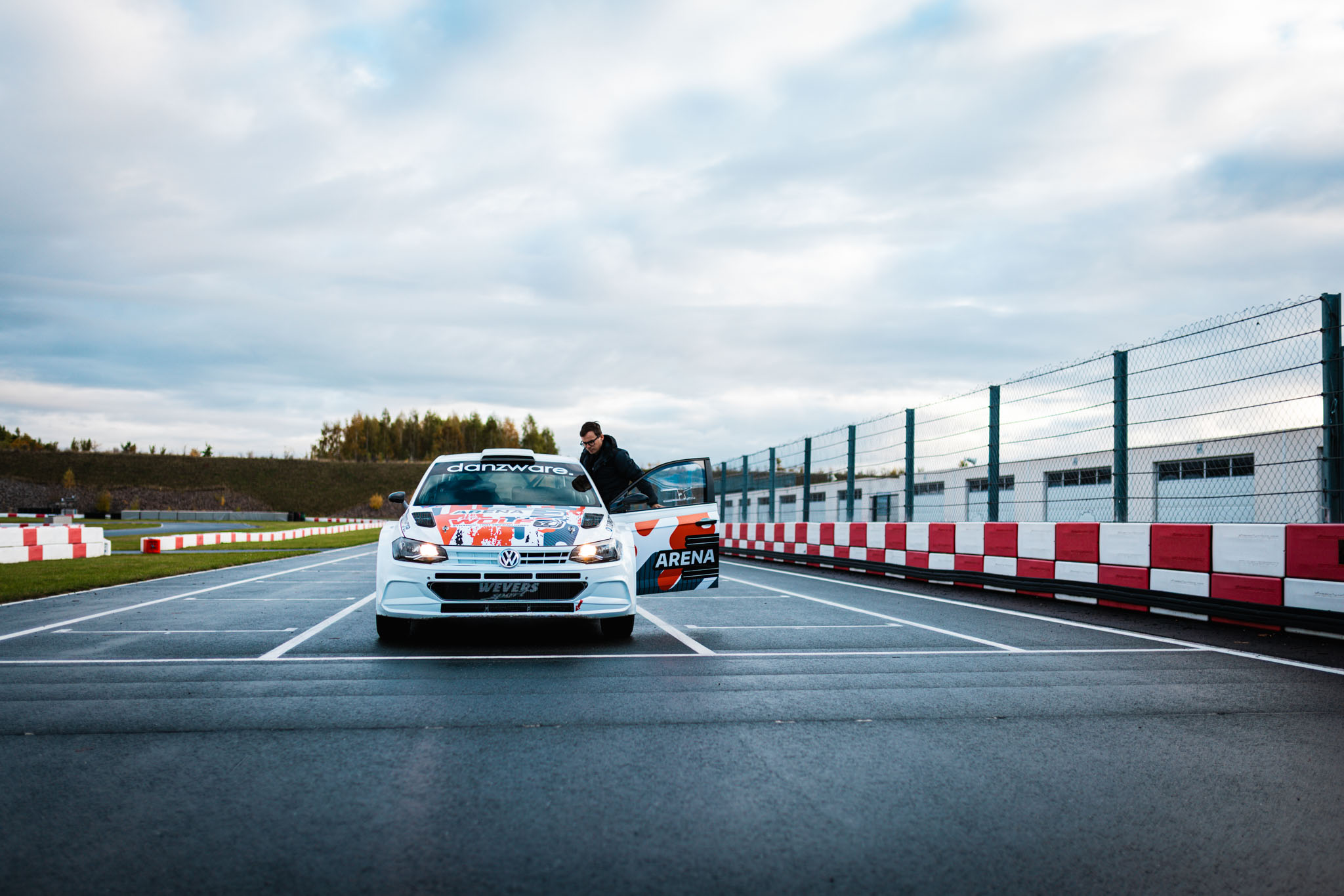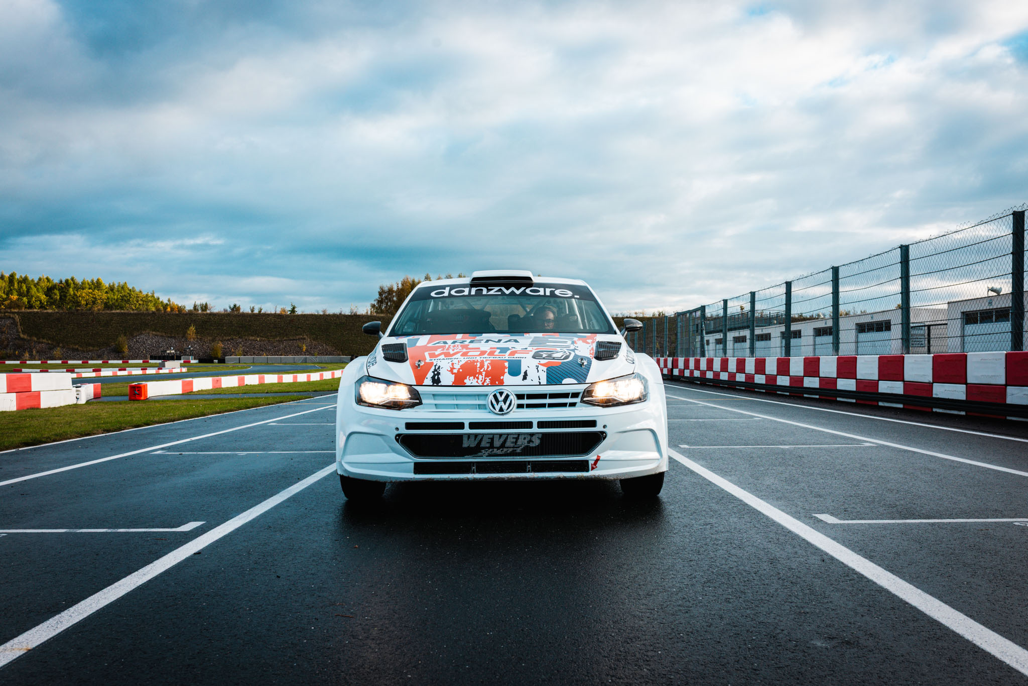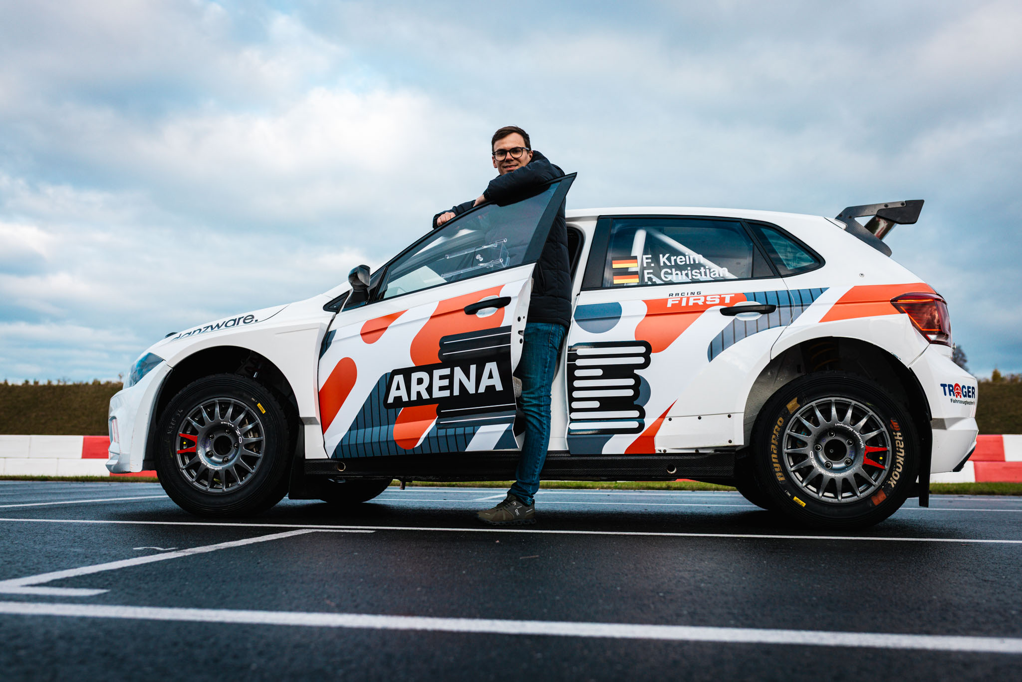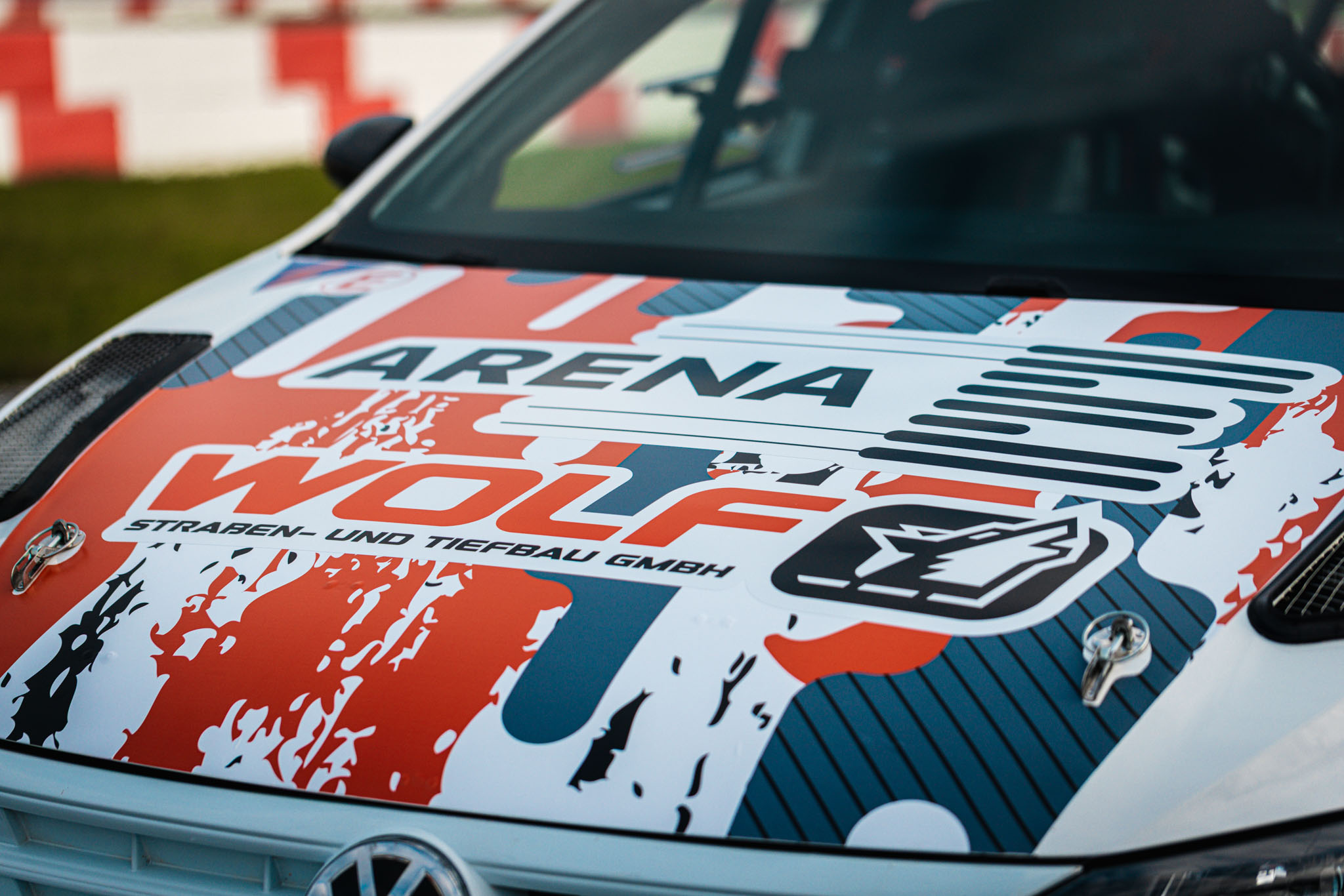 Für Fabian Kreim und Co-Pilot Frank Christian haben wir dieses Rallye-Auto für die Lausitz-Rallye im markanten Arena E X Wolf-Straßenbau X danzware-Look gestalten lassen – kraftvoll, auffällig und mit maximalem Wiedererkennungswert auf und neben der Strecke.