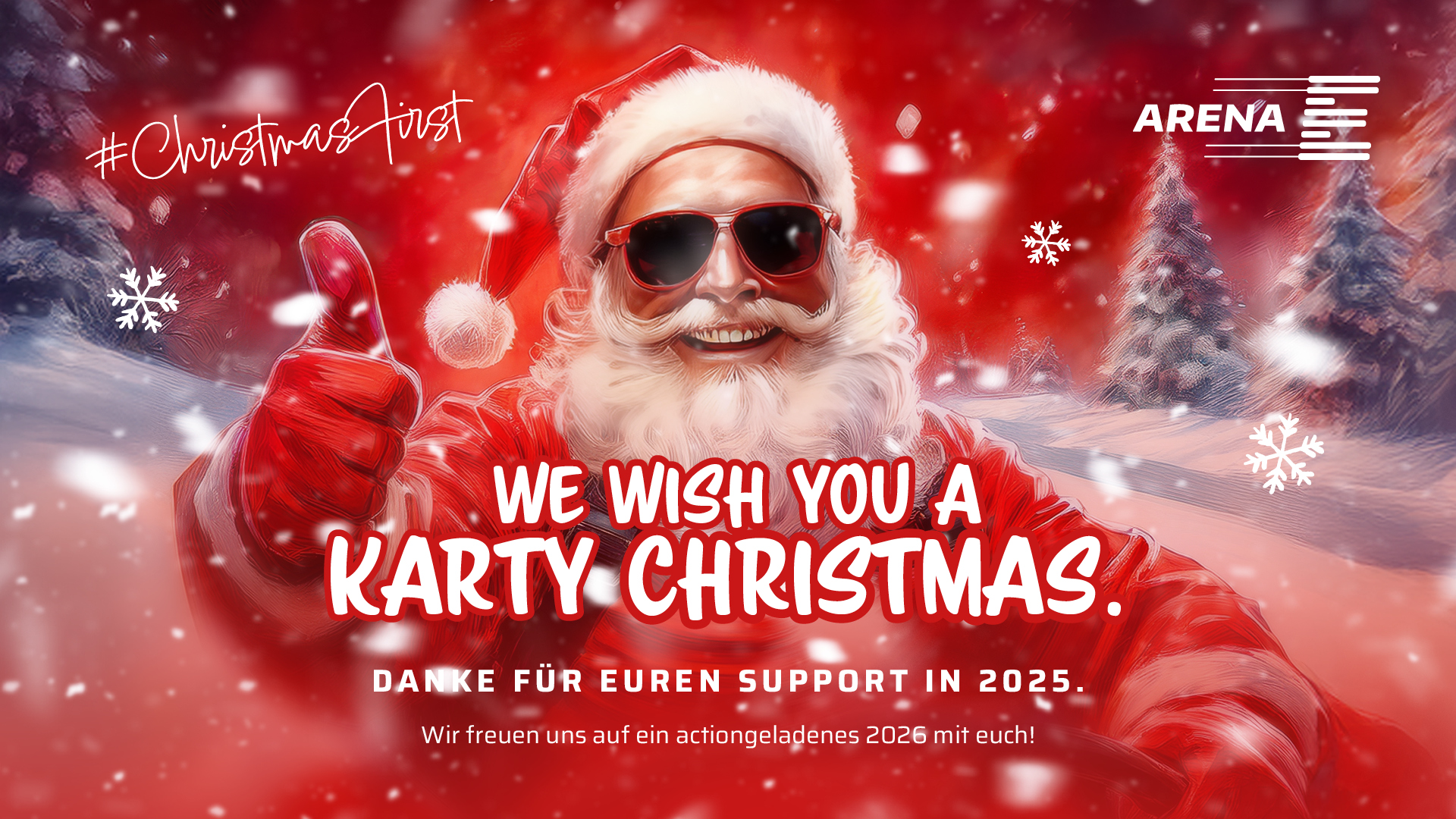 Allen Motorsportfreaks, Kartbegeisterten, Boxenstopp-Fans und Adrenalinjunkies wünschen wir ein fröhliches, entspanntes und zugleich rasantes Weihnachtsfest – und natürlich einen guten Rutsch ins neue Jahr!