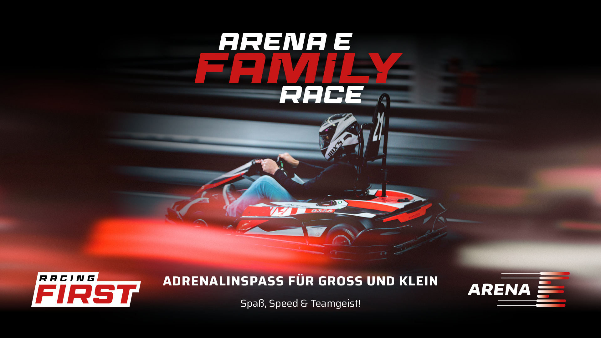 Gemeinsam ins Rennen starten! Ob Mama, Papa, Kids oder Freunde – beim 60-Runden-Familienrennen seid ihr ein Team und jagt gemeinsam durchs Kart-Indoor-Oval.